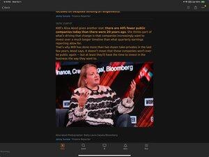 Zde je myšlenka. Možná "divoká" statistika, že společnosti zůstávají soukromé déle, souvisí s faktem, že diskontovaná cena (riziková prémie nelikvidity) za to, že je soukromá, už není, co bývala (nebo je možná zpátečnická). Pokud ano, nevěstí to nic dobrého pro soukromé vs. veřejné