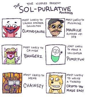 První ročník cen Solana SOL-purlative je tady! Gratulujeme letošním vítězům a jejich tvrdé práci, díky které je Solana o něco sol-y Všichni dostanete milion nippibucků