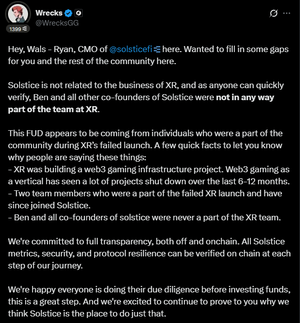 Důležitá aktualizace @solsticefi od jejich CMO: