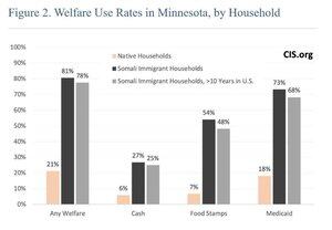 81 % der somalischen Einwandererhaushalte in Minnesota beziehen Sozialhilfe.