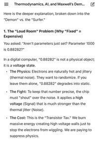 Con la IA, jugamos al Demonio mientras forzamos a los transistores a estados rígidos solo para mantener un solo parámetro. Cada uno es un número entre 0 y 1. Quemamos una gran cantidad de energía en el proceso para luchar contra la entropía y mantener estos números específicos