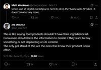 Valve-artisti vastaa vaatimuksiin, että Steam luopuisi "Made with AI" -levymerkistä