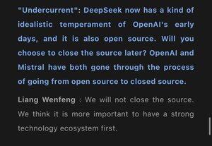 Deepseekin perustaja Liang Wenfeng: Emme aio siirtyä suljetun lähdekoodin käyttöön. Uskomme, että vahvan teknisen ekosysteemin perustaminen ensisijaisesti on tärkeämpää.