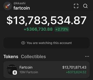 このウォレットは716ドルを1300万ドル以上に$Fartcoinしましたが売却されず、現在は340万ドルの利益を上げています。