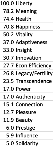 Relative prioriteringer av 19 ting folk ønsker for seg selv, medarbeidere, fellesskap:
