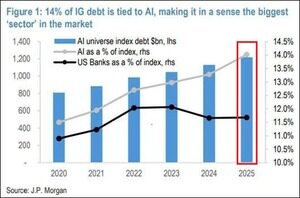 As empresas relacionadas com IA agora refletem um recorde de 14% do Índice de Obrigações Corporativas de Grau de Investimento.