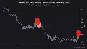 Exemplo: Starknet ($STRK) atingiu o pico no final de 2024 em meio a um aumento na atividade de retalho — e está emitindo sinais semelhantes novamente.