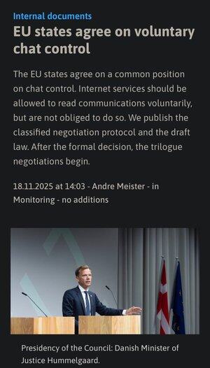 Внутренние документы: государства-члены ЕС согласны на добровольный контроль чата