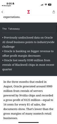 >läckt Oracle-slide: 900 miljoner dollar i intäkter, 125 miljoner dollar brutto, 100 miljoner dollar rött på Blackwell GPU:er