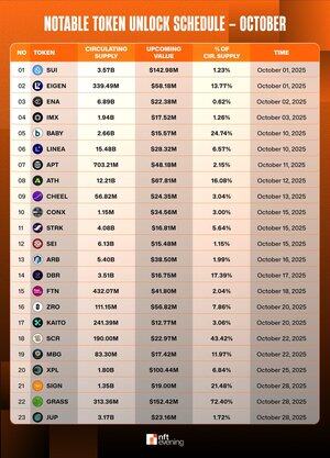 🔓 $SUI – 142.98 miljoner dollar (1 oktober)