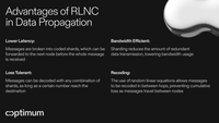 Optimum (@get_optimum) - це проект, який переслідує цей напрямок. Оптимально підходить до програмних інновацій, а не апаратних. Він використовує технологію мережевого кодування під назвою RLNC (Random Linear Network Coding) для оптимізації поширення повідомлень між вузлами, що призводить до до 6 разів швидшої продуктивності, ніж існуючий GossipSub.