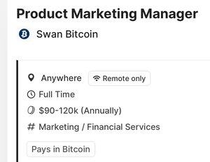 Công việc Quản lý Tiếp thị Sản phẩm mới nóng @Swan! Chia sẻ với bất kỳ ai bạn nghĩ có thể phù hợp 🙏 Nộp đơn qua @BitcoinerJobs: