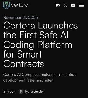 🚨剛剛消息:@CertoraInc,一家加密貨幣安全和審計公司,推出了一個開源的AI Composer,將形式驗證直接整合到AI生成的智能合約代碼中。該工具在執行之前進行數學安全檢查。